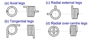 There are numerous options for leg configuration and will predominantly be determined by the method by which they are attached to the mechanism as a whole. We can offer a wide variety of options to include: straight legs, loops, complex bends and double torsion varieties.